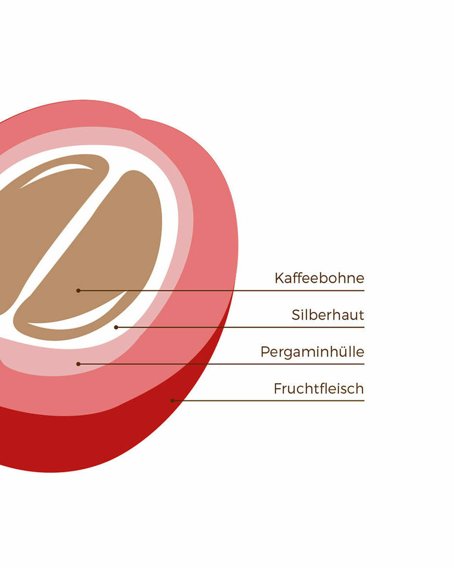 Eine Kaffeekirsche enthält in der Regel zwei Kaffeebohnen. Nur die allerbesten Kaffeekirschen werden ausgelesen und vom Fruchtfleisch getrennt, damit sie in der Erde zu keimen beginnen.