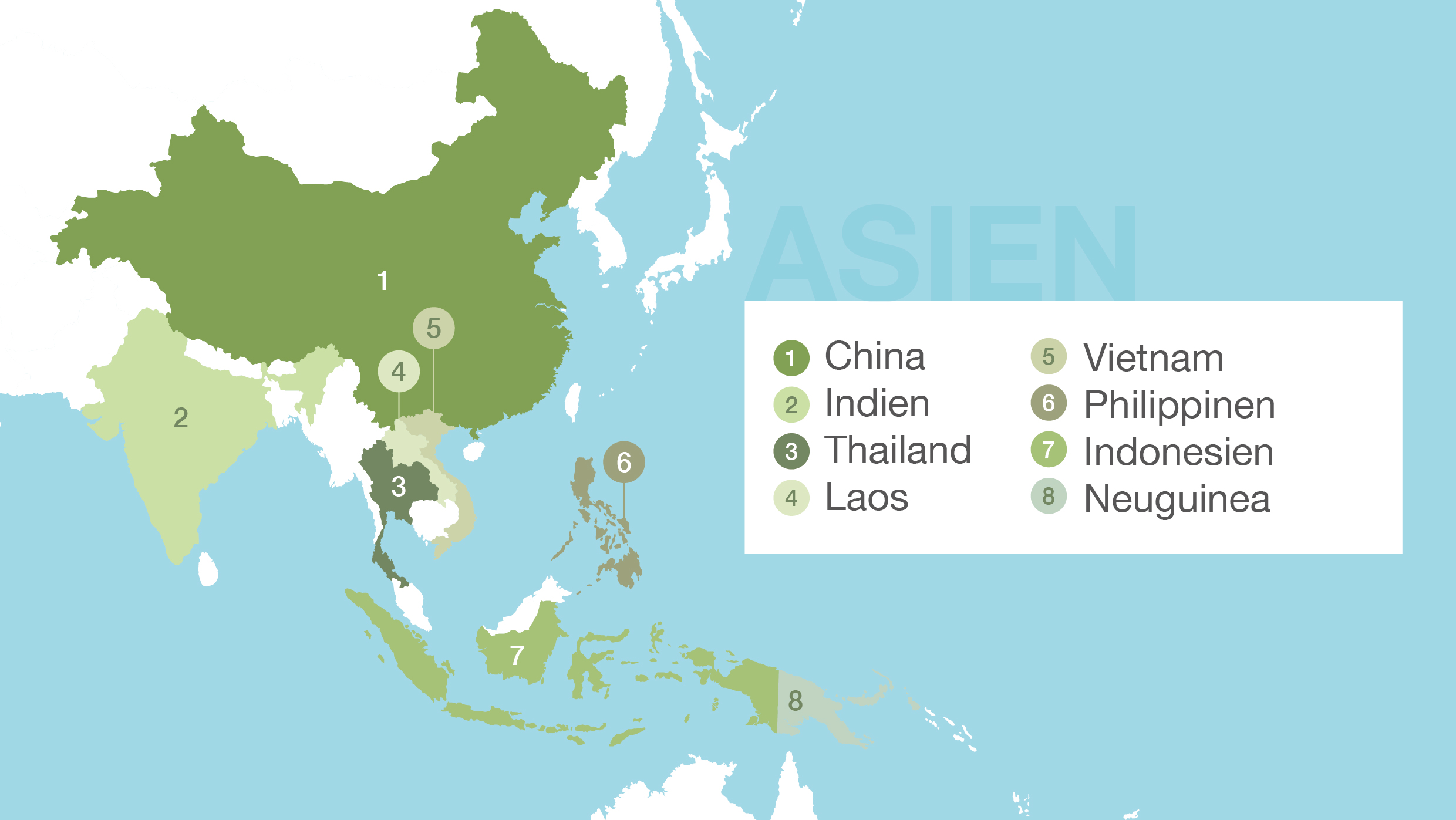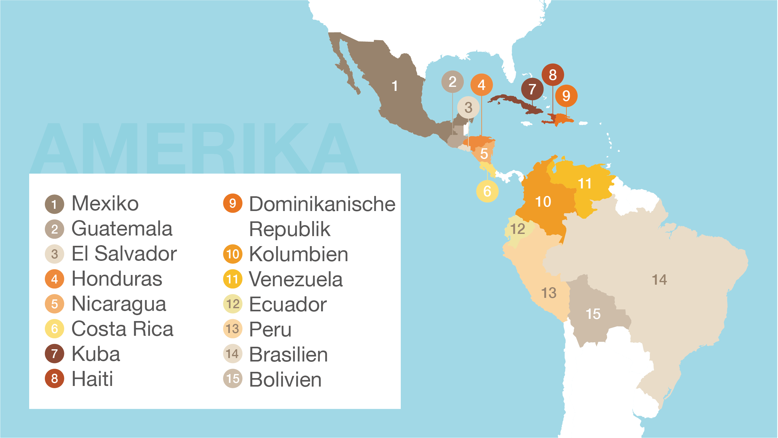 Etwa 55 % der Kaffee-Weltproduktion stammen von “Coffea arabica“-Bäumen. Sie gedeihen besonders gut auf Höhen zwischen 600 und 2’000 m ü.M. und sind vor allem in Zentral- und Südamerika sowie an der Ostküste Afrikas zu finden. Die Arabica-Kaffeekirschen reifen in 7 bis 8 Monaten und werden mehrheitlich nach dem gewaschenen Verfahren aufbereitet.
