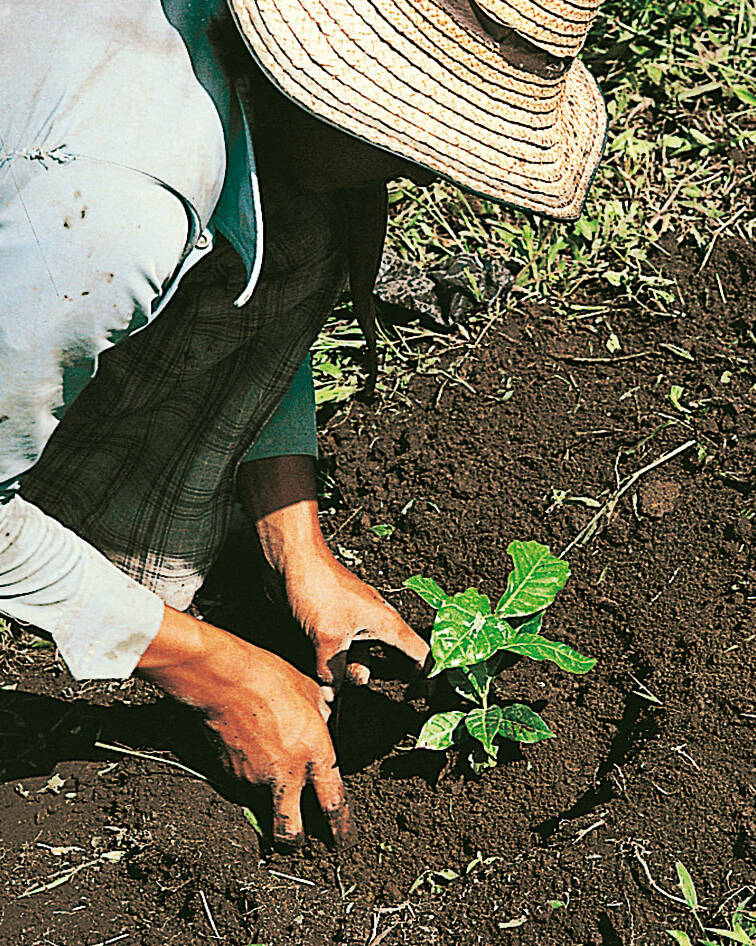 Après 4 à 5 mois, les jeunes arbustes atteignent une hauteur de 30 à 40 cm environ et sont plantés dans les plantations où ils poursuivent leur croissance.
