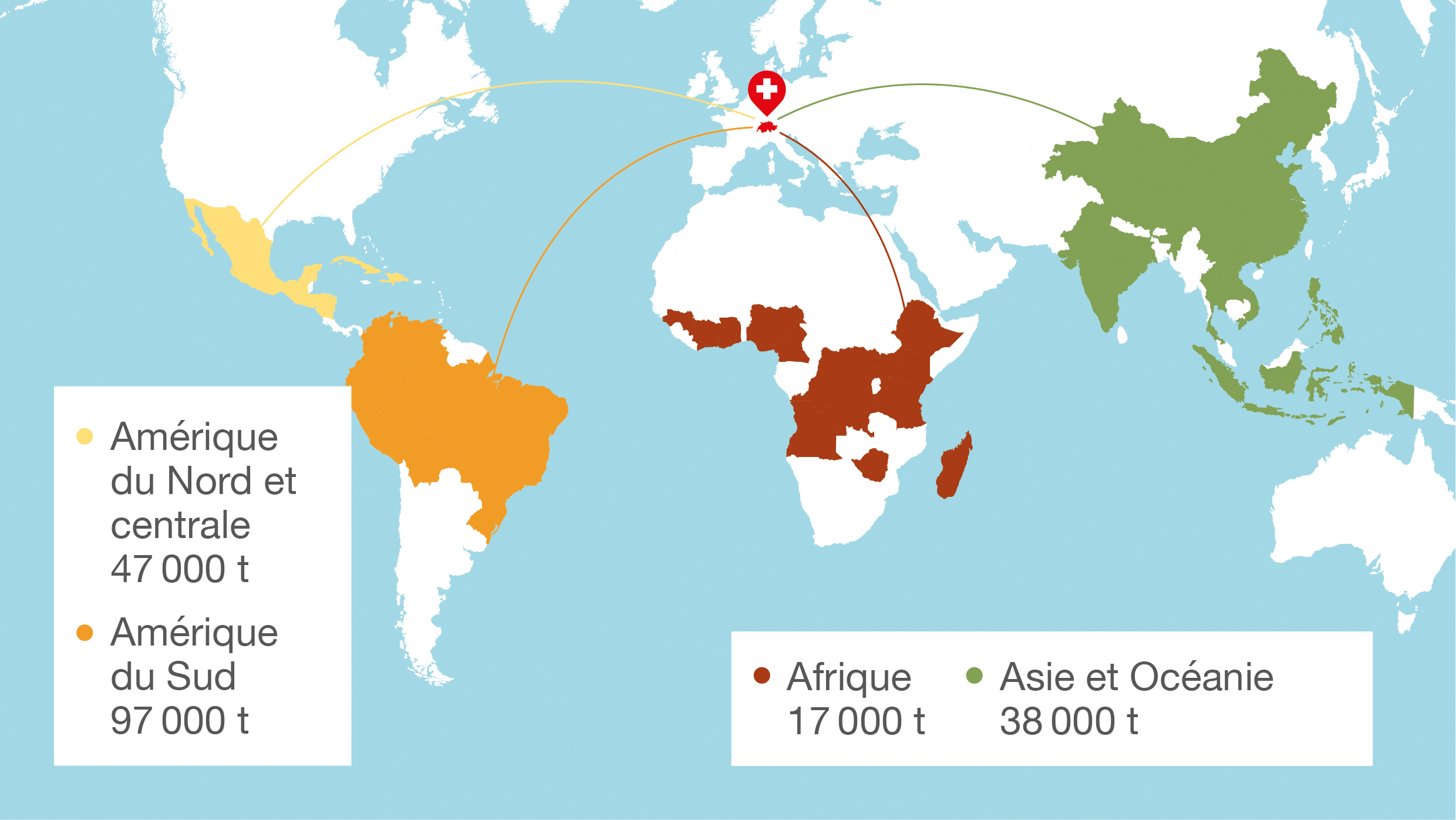 Le café arrive en Suisse après avoir emprunté les voies maritimes ci-dessous.