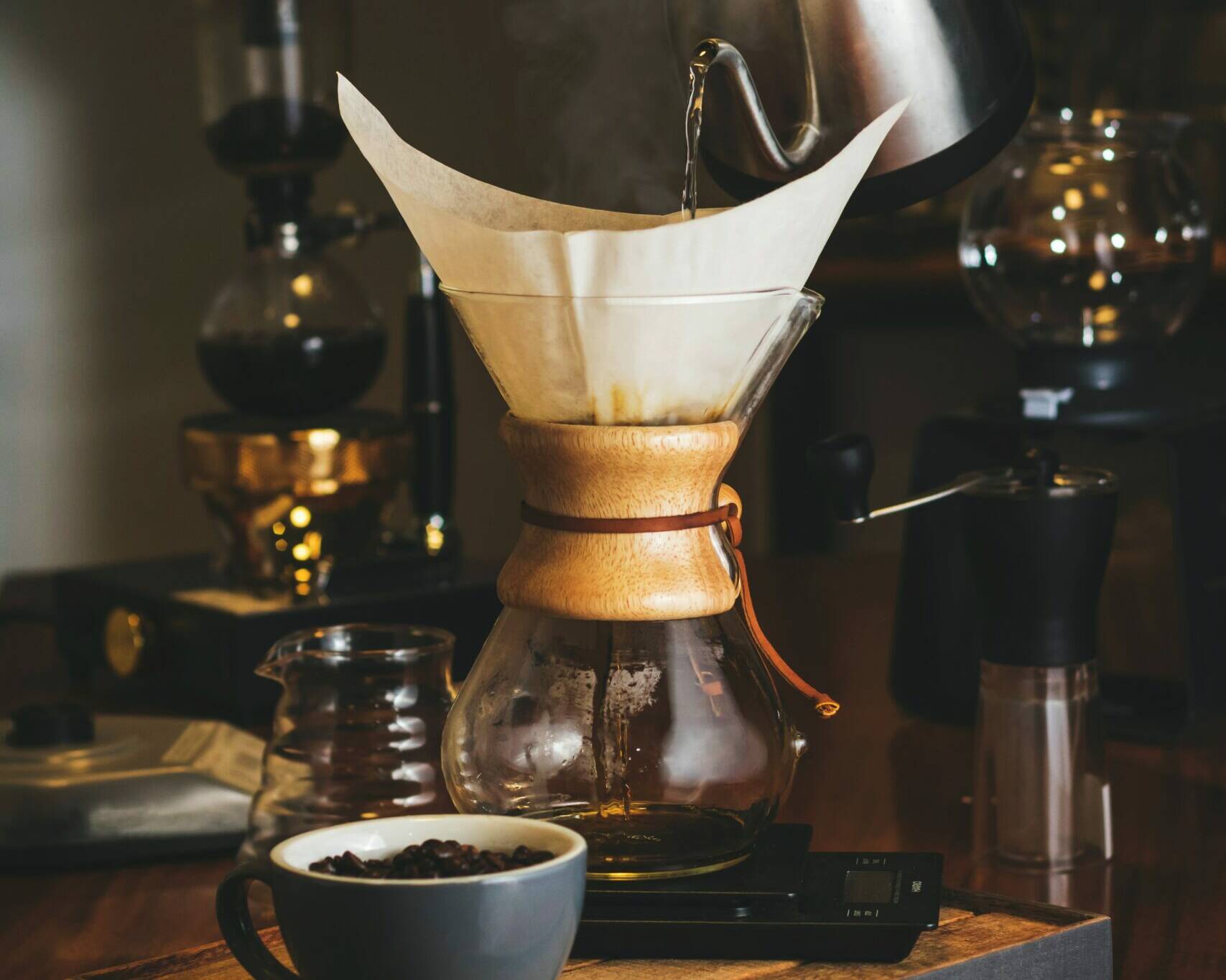 La cafetière Chemex a été inventée par le Dr Peter J. Schlumbohm, un chimiste allemand. Elle est considérée comme un classique parmi les accessoires pour préparer le café. Par rapport aux machines à café automatiques typiques, la Chemex a des avantages décisifs: la température d’infusion, le temps d’infusion et le nettoyage. En outre, grâce à son filtre plus épais et à texture plus fine que celui utilisé par la traditionnelle cafetière filtre, la Chemex offre des cafés doux et ronds, très aromatiques et sans aucune amertume.